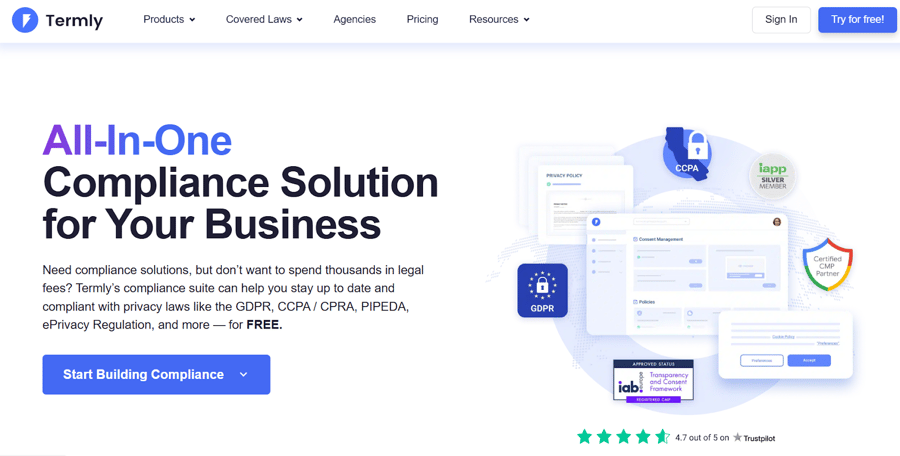 Termly is a lightweight consent management tool that bundles cookie consent banners with policy generation, built for small teams that want a low-commitment start.