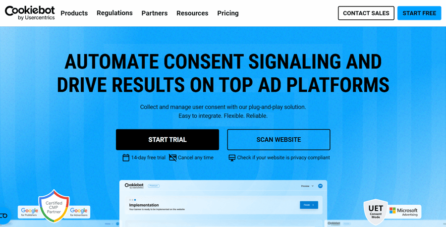 Cookiebot is a cookie-focused consent management platform built around ongoing scanning, cookie categorization, and script control, with an emphasis on keeping your consent layer up to date as tags change.