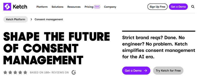 Against the six criteria, Ketch looks strong on consent management, DSAR workflows, data mapping, and integrations. It also has public starter pricing and a quick-start story, which helps with implementation effort. Shopify or web-stack fit is moderate rather than standout, since Ketch talks more broadly about digital properties and privacy operations than about Shopify or retail specifically.