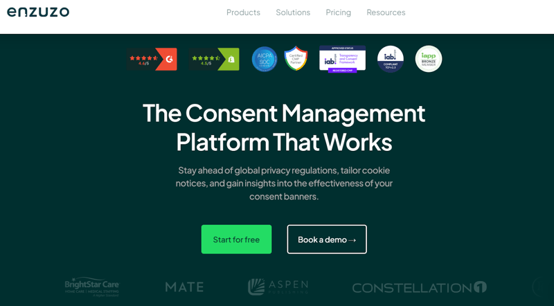 If you need data privacy management software for a website, store, or marketing-led stack, Enzuzo has one of the clearest fits in the market. Its public product story is grounded in consent management, legal policies, DSARs, Google-certified CMP support, and Shopify use cases.