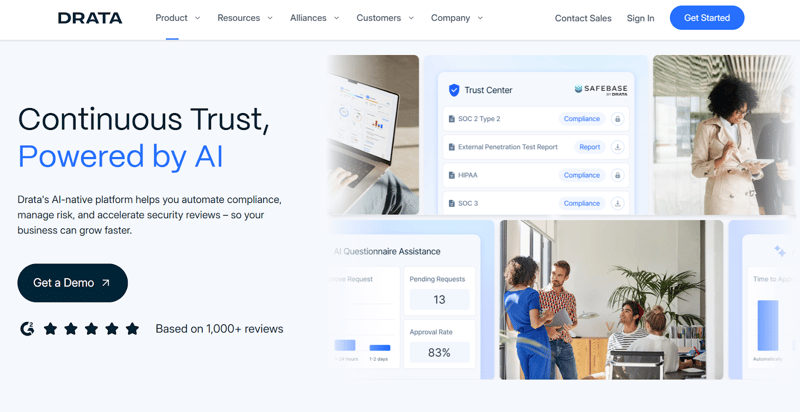 Drata fits this guide more from the compliance side than from classic privacy-product depth. Its public pages focus on compliance automation, continuous control monitoring, trust-center workflows, and evidence collection across frameworks such as General Data Protection Regulation (GDPR), SOC 2, ISO 27001, and Health Insurance Portability and Accountability Act (HIPAA). That makes it more adjacent to privacy management than squarely inside the same lane as Enzuzo or Ketch.