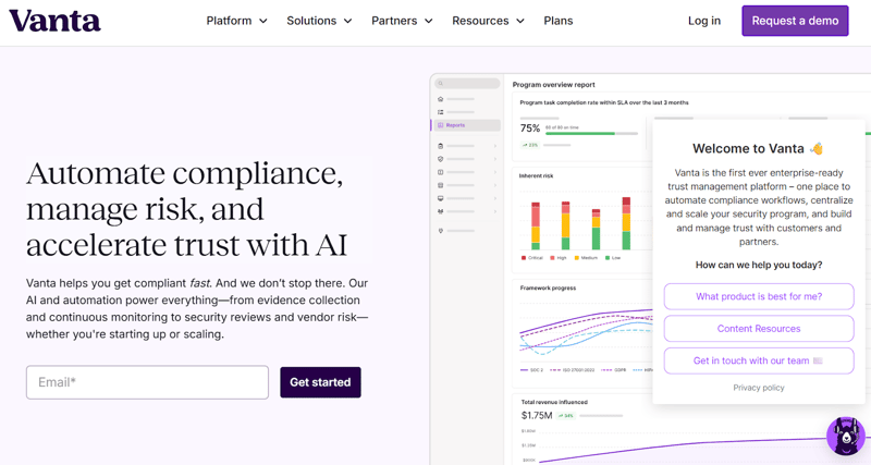 Vanta, like Drata, fits this list from the broader compliance and trust side. Its public product pages center on GDPR compliance, continuous monitoring, templates, dashboards, and trust-center workflows, with integrations used to automate evidence collection across connected systems.